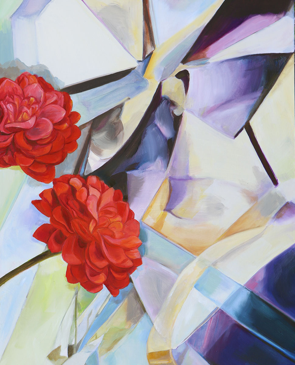 My paintings are shaped by observation and intuitive response. I enjoy weaving together natural elements with abstract, geometric shapes, creating compositions that flow.